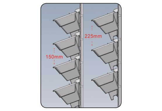 Variabel vertical and horizontal tray spacing allows different planting and design options.