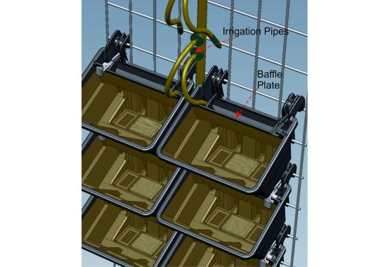 - Baffle plate: Distributes irrigation, prevents media spillage and allows trays to neatly overlap in close planting.