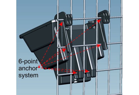 - Anchor system: 6-point mounting permits flexible use of various mounting options individually or in combination.