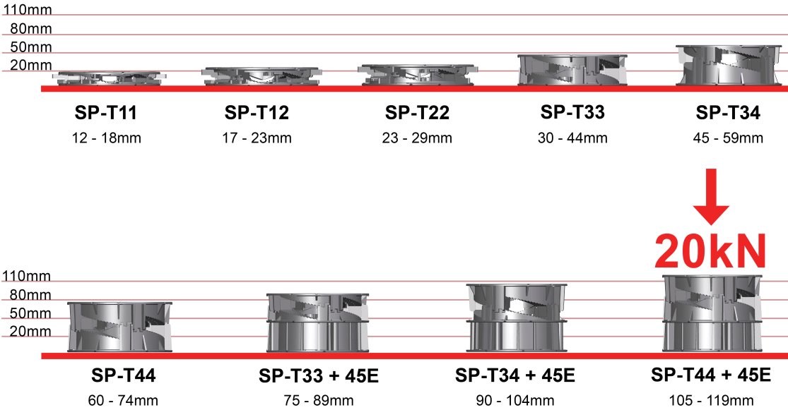 Mit SpiraPave Stelzlager können Beläge aller Art, genau auf die gewünschte Höhe ausgerichtet werden. Eine Kies-, Schlittschüttung entfällt. Ausblühungen und Algenbildungen entfallen. Das Wasser wird rasch durch die offenen Fugen abgeführt und der Belag ist stetig unterlüftet. Ein rascher Zugriff auf die Abdichtung der Installationen unter dem Belag ist jederzeit gewährleistet.