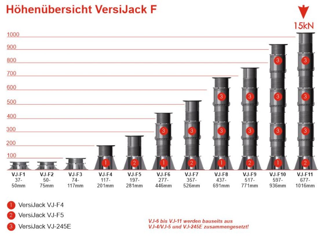 Mit VersiJack Stelzlager können Beläge aller Art, genau auf die gewünschte Höhe ausgerichtet werden. Eine Kies-, Splittschüttung entfällt. Ausblühungen sowie Algenbildungen entfallen. Das Wasser wird rasch durch die offenen Fugen abgeführt und der Belag ist stetig unterlüftet. Ein rascher Zugriff auf die Abdichtung oder Installation unter dem Belag ist immer gewährleistet.